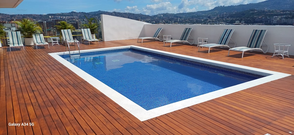 Vive Caracas desde las alturas | Apartamento con Piscina, Vista Panorámica y Estilo 💫 Relájate en este apartamento moderno y cómodo, ubicado en el corazón de Los Palos Grandes. • 🛏 2 habitaciones (cama Queen + litera doble individual ) • 🛋 Sala moderna con Smart TV y Wi-Fi 400 MPS • 🍽 Cocina equipada • 🧼 Baño con agua caliente. • 🏙️ Piscina panorámica en la azotea • 🛡️ Edificio seguro 24/7 ✅ Haz tu reserva y despierta con una vista única de Caracas!