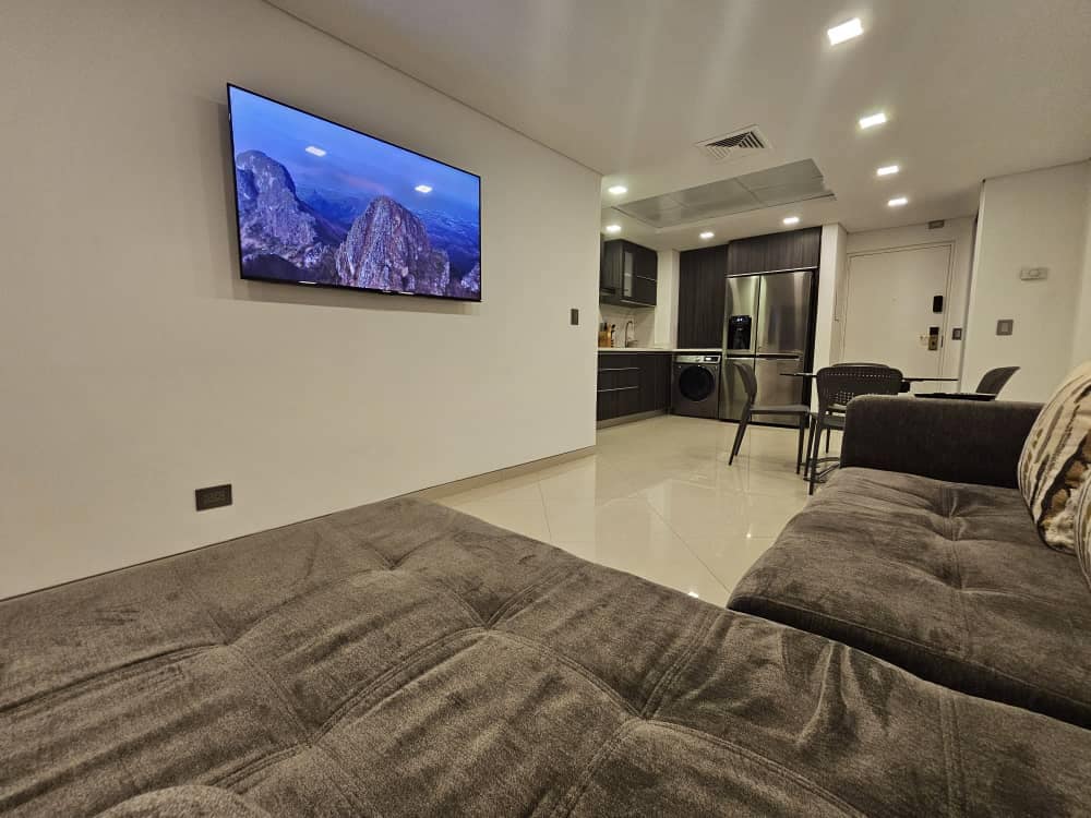 Apartamento de 60 metros cuadrados, con luz y ventilación natural en todos sus espacios, de una habitación con el resto de las áreas integradas, sala-estudió-cocina. Piso bajo, ubicado en la parte posterior del edificio. En la zona hay racionamiento de agua, el apartamento cuenta con su propio tanque de agua. Filtro de agua potable de ósmosis inversa. Disponible un servicio de internet de fibra óptica de 200 megas de ancho de banda de fibra óptica. En caso que requiera estacionamiento, pregunte.