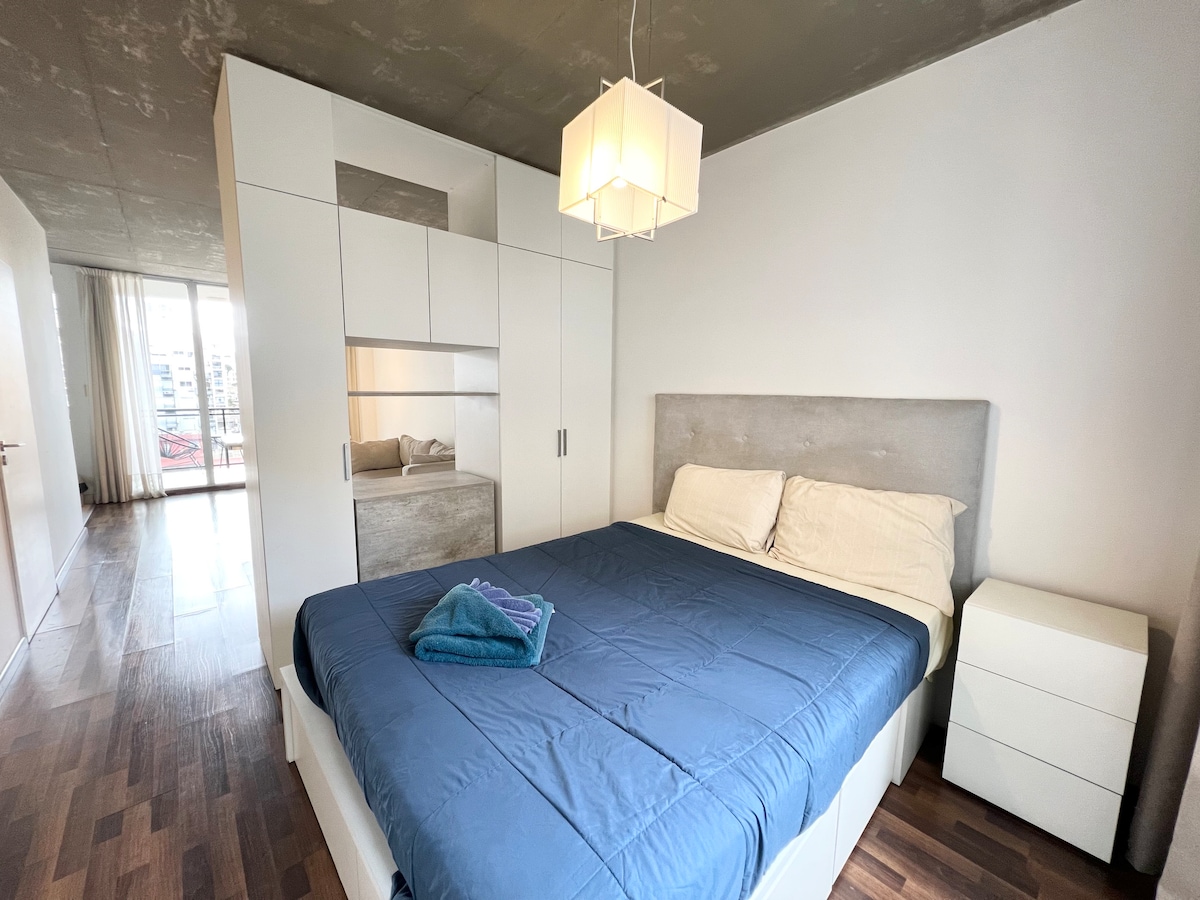 Relajate en este alojamiento único y tranquilo. Descubrí todos los restaurantes y bares que ofrece el barrio. El estudio tiene 40 m, una cama king size de 2 x 2 con ropa de cama Suave y fresca. Black.out y Aire Acondicionado. Zona de trabajo, un comedor, cocina equipada para preparar desayuno o una pequeña comida. Baño super cómodo con bañadera y un balcón ideal para disfrutar la nochecita porteña con una cerveza o unos ricos mates antes de organizar el día.