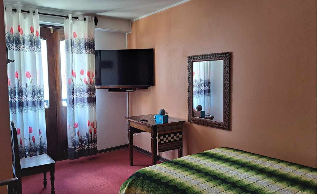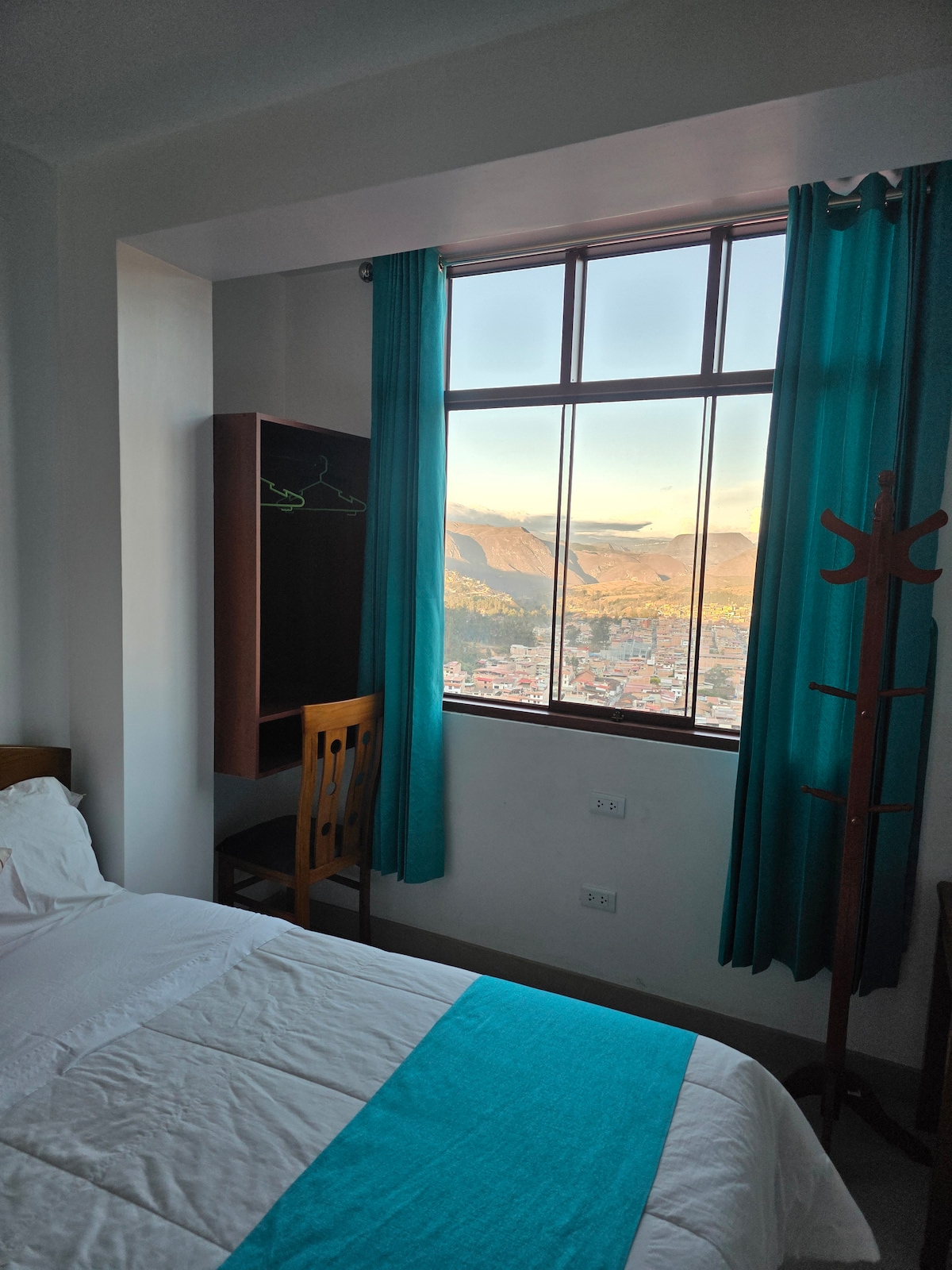 Disfruta de una estadía única, en el corazón de Chachapoyas. Nuestra habitación combina comodidad y estilo, con camas confortables, baño privado con agua caliente, WiFi de alta velocidad y TV por cable. Su decoración cálida crea un ambiente acogedor, mientras que las amplias ventanas ofrecen vistas encantadoras a la ciudad y al paisaje andino. Ideal para viajeros que buscan descanso, elegancia y una experiencia auténtica en los Andes