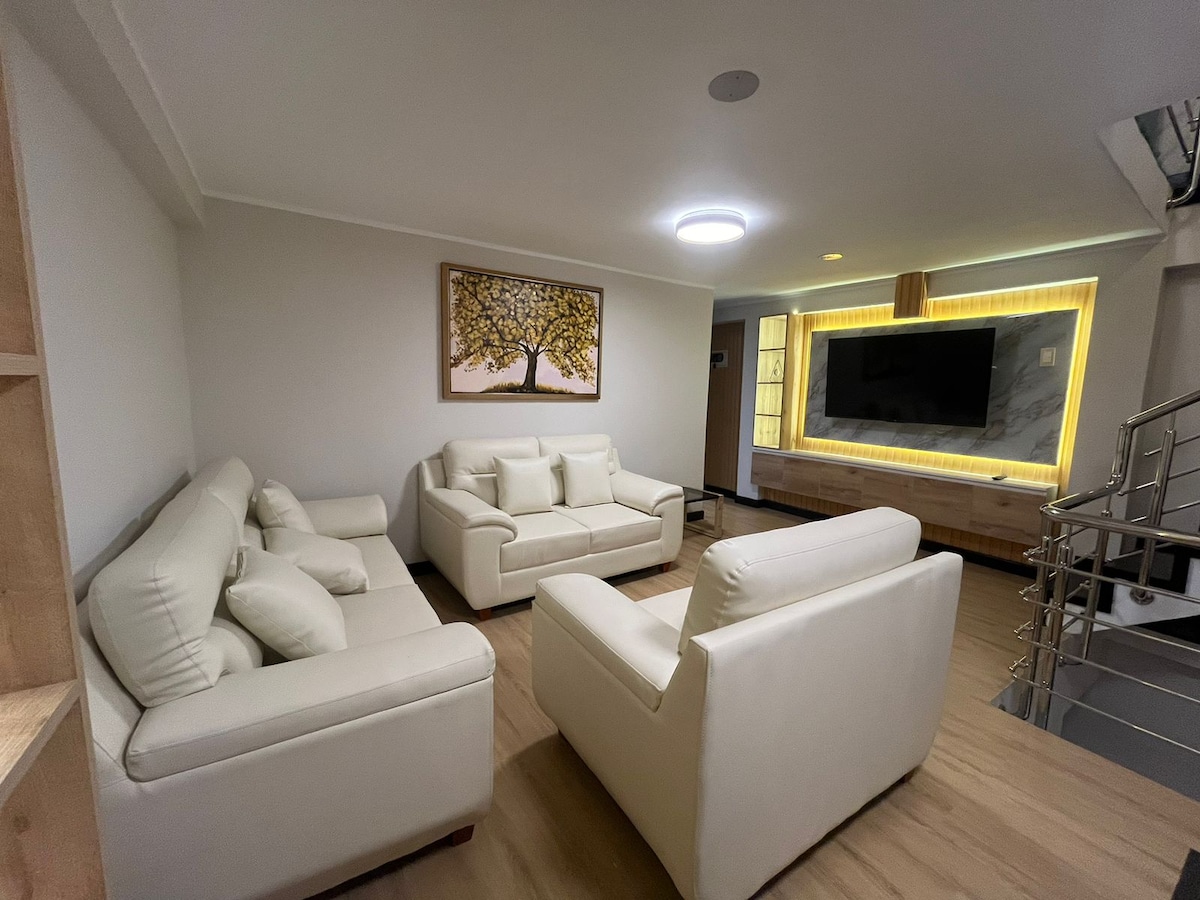 Disfruta de una experiencia con estilo en este alojamiento céntrico. Habitación en el primer piso, con diseño propio, cama Queen Size, baño, cocina y comedor privados, agua caliente, TV 55", Wi Fi, terracita. Tendrás también acceso a otra terraza y bar en el piso superior, con TV de 65" y vista a toda la ciudad.