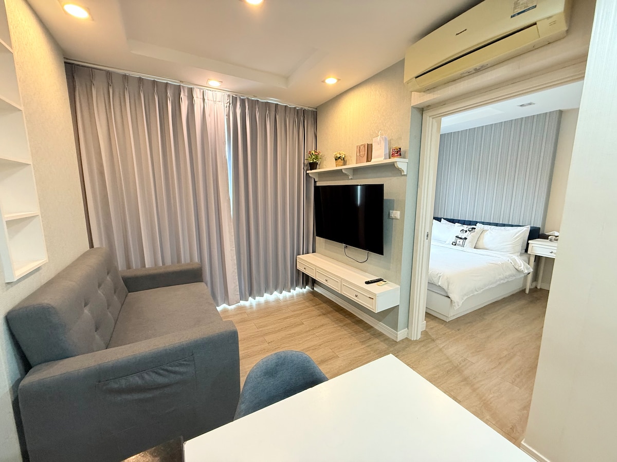 Cozy Family-Friendly Apartment in the Heart of Bangsaen. Key Features: 1 Cozy Bedroom and 1 Spacious Common Room with a sofabed for 2 extra guests. Well-equipped Kitchen with all utensils you'll need for a convenient and comfortable meal, with selection of snacks, including aromatic Vietnamese coffee from beloved brand. Prime Location – Just a short walk to Won Beach for sun, sea, and sand, located near the side gate of Burapha University, easy to explore the campus or visit university events.