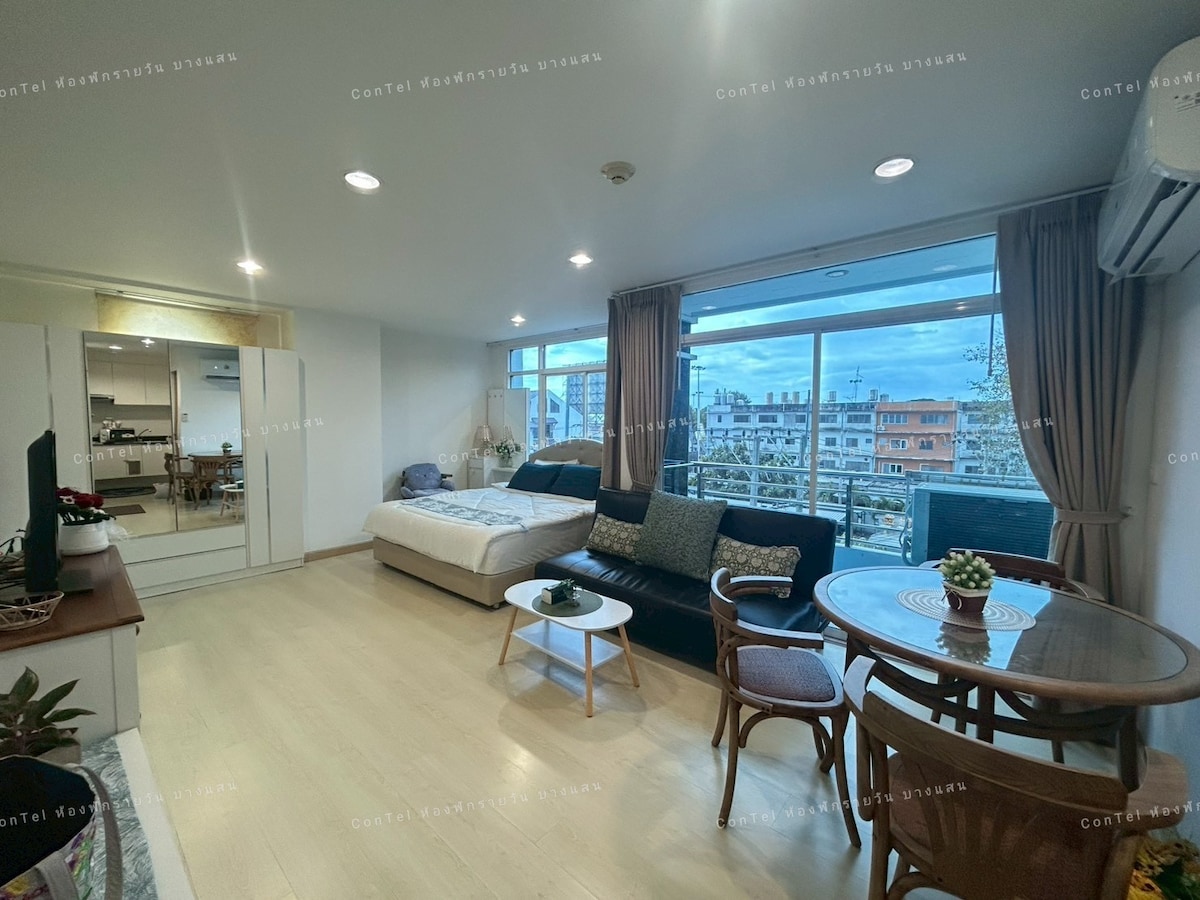 Cozy 28 sqm retreat on the 2nd floor, just steps from Laem Tan Beach. Enjoy views of Khao Sam Muk, with Bangsaen Beach, night market, and Burapha University nearby. Convenient parking available — perfect for 2 guests.
