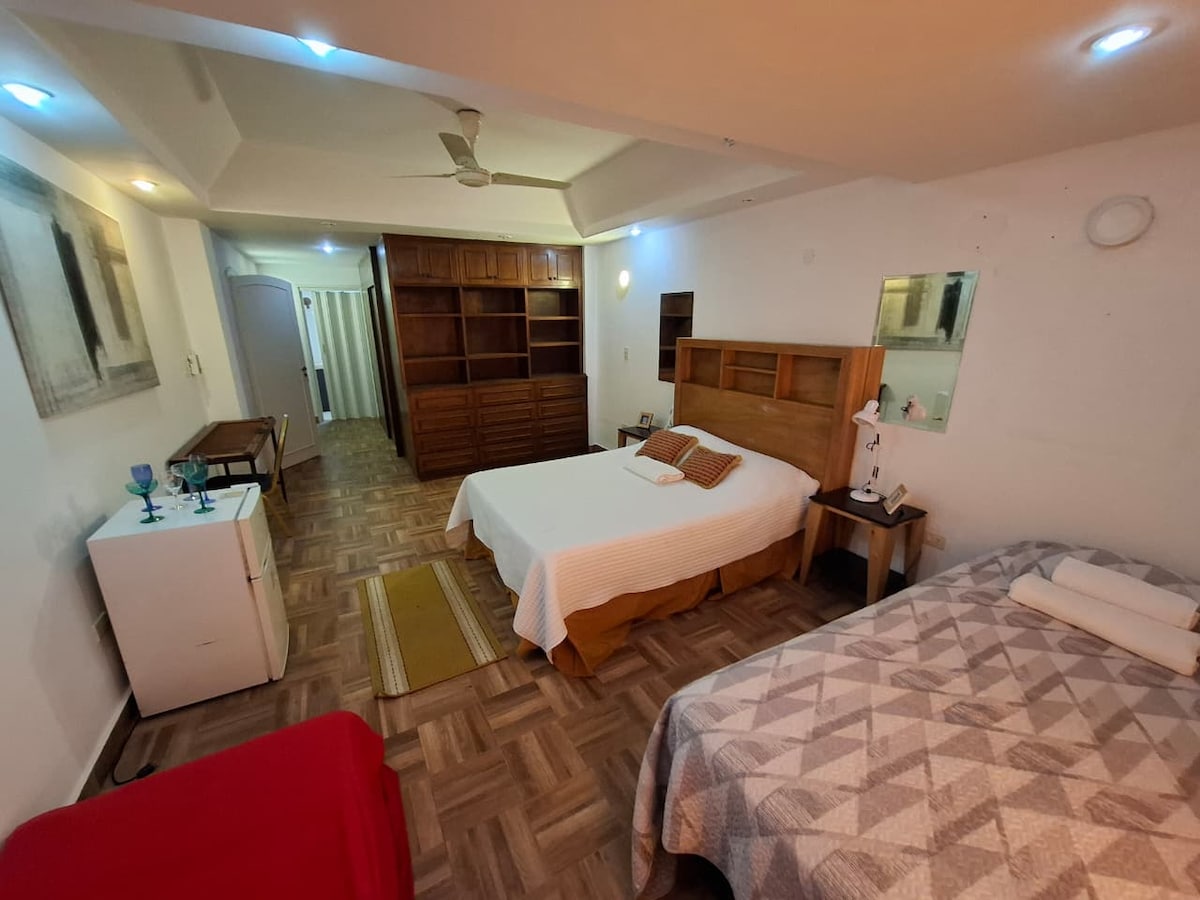 Sentite como en casa en este cálido y acogedor monoambiente en Asunción, a solo 15 minutos de los puntos más atractivos de la ciudad. Disfrutá del wifi, TV con acceso a Netflix y Prime, un ambiente relajado que invita a desconectarte del ritmo de la ciudad. A pasos encontrarás supermercados 24 hs, restaurantes y todo lo necesario para tu estadía Un espacio perfecto para viajeros que buscan comodidad, buena ubicación y un rincón acogedor donde descansar