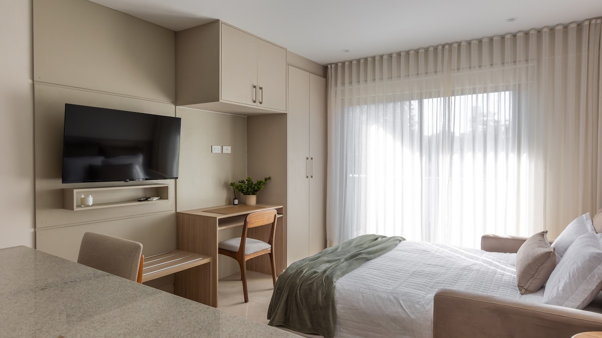 Este loft privado forma parte de un residencial moderno ubicado en el barrio Ykua Sati, una de las áreas más exclusivas y convenientes de Asunción. El espacio es totalmente independiente, con entrada privada, baño propio y kitchenette equipada. Como huésped tendrás acceso a amenities: • Gimnasio • Área de coworking para trabajar o estudiar • Área de parrilla para compartir • Lavandería con lavarropa y secarropas, disponible para uso del huésped