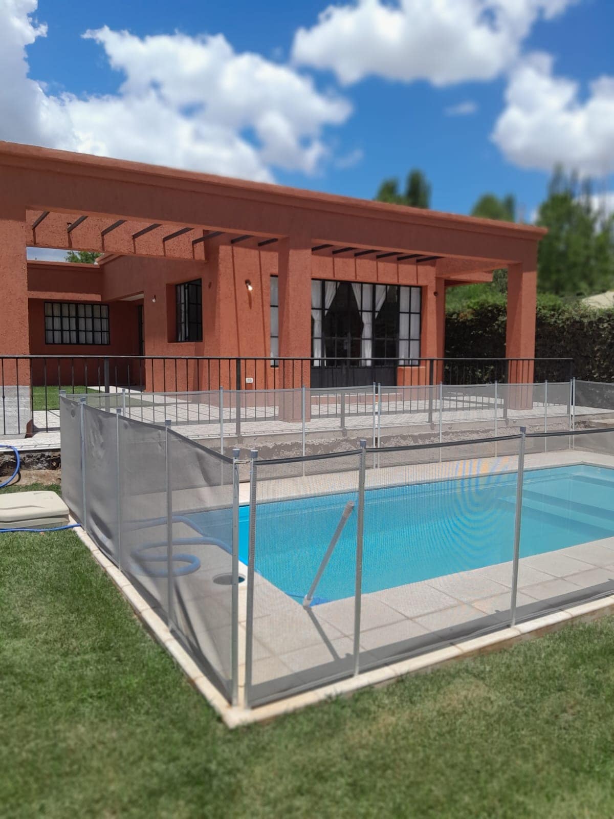 The Barbecue Outhouse_ (45m2 covered) with clay oven, barbecue, bar and a complete bathroom. Swimming pool and sundeck area. The House_ (250m2 covered area) on a 1,000m2 lot. Landscaped. 4 bedrooms, 1 office. 2,5 bathrooms. Living room. Kitchen. TV room (separate). Garage for 2 vehicles. Enjoy a relaxed family atmosphere!