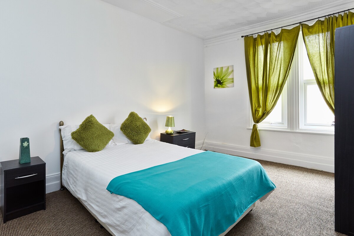 Exclusive use of ground floor flat with modern conveniences (central heating, hi speed wifi, bath/ shower etc...) in a quiet, listed area within 7 minutes walking distance of the cathedral quarter/city centre. WiFi TV, free wifi internet, king size bed, computer desk, children's games, permits registered online for residential parking outside (please provide vehicle registration at least 8 hours in advance). Easy self-checkin with swipe card form key box, suitable for business guests and