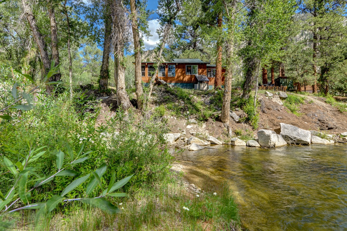 Welcome to Casa Del Rio a Central Colorado Getaways property. Located directly on the Arkansas River, just upstream of Fisherman‘s Bridge, between the Milk Run and Brown’s Canyon. 5 minutes north to Buena Vista. Newly updated this home is elegant, comfortable, and the perfect place to get away. While staying here you can toss in your fishing line, launch your raft, kayak, SUP, or duckie, gather at the fire pit next to the river, or simply lounge in the hot tub (seats 4-6) or dry sauna (seats 2).