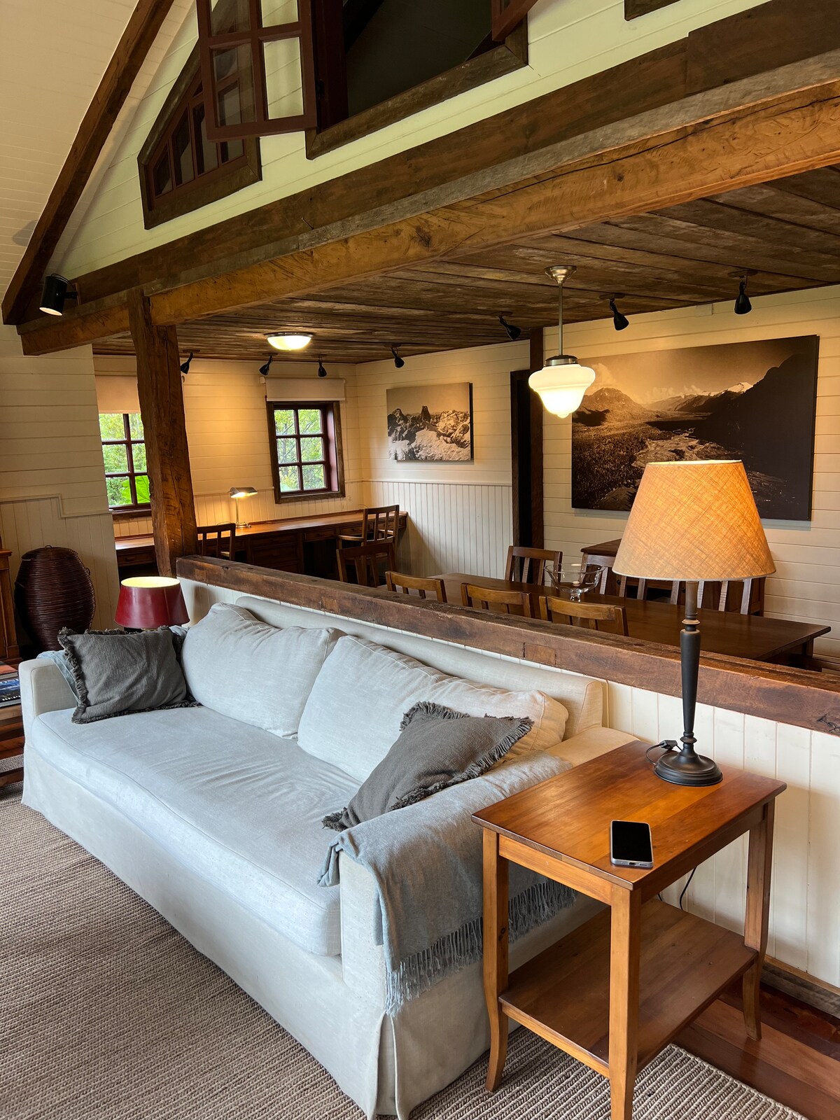 Loft-Style House, Located on the Banks of the Michimahuida River on the Carretera Austral at km 237. Just 10 minutes from the main entrance of Pumalin National Park (Amarillo Sector - Supply Services) and 5 minutes from Lake Yelcho. Amazing views of the Glacier and River. With a beach on the riverbank. Equipped kitchen, living-dining room, 1 Queen bed, 1 Twin bed, large bathroom, indoor fireplace, grill, and fire pit. Starlink Internet. TV (DirecTV). 2 bicycles available for guest use.