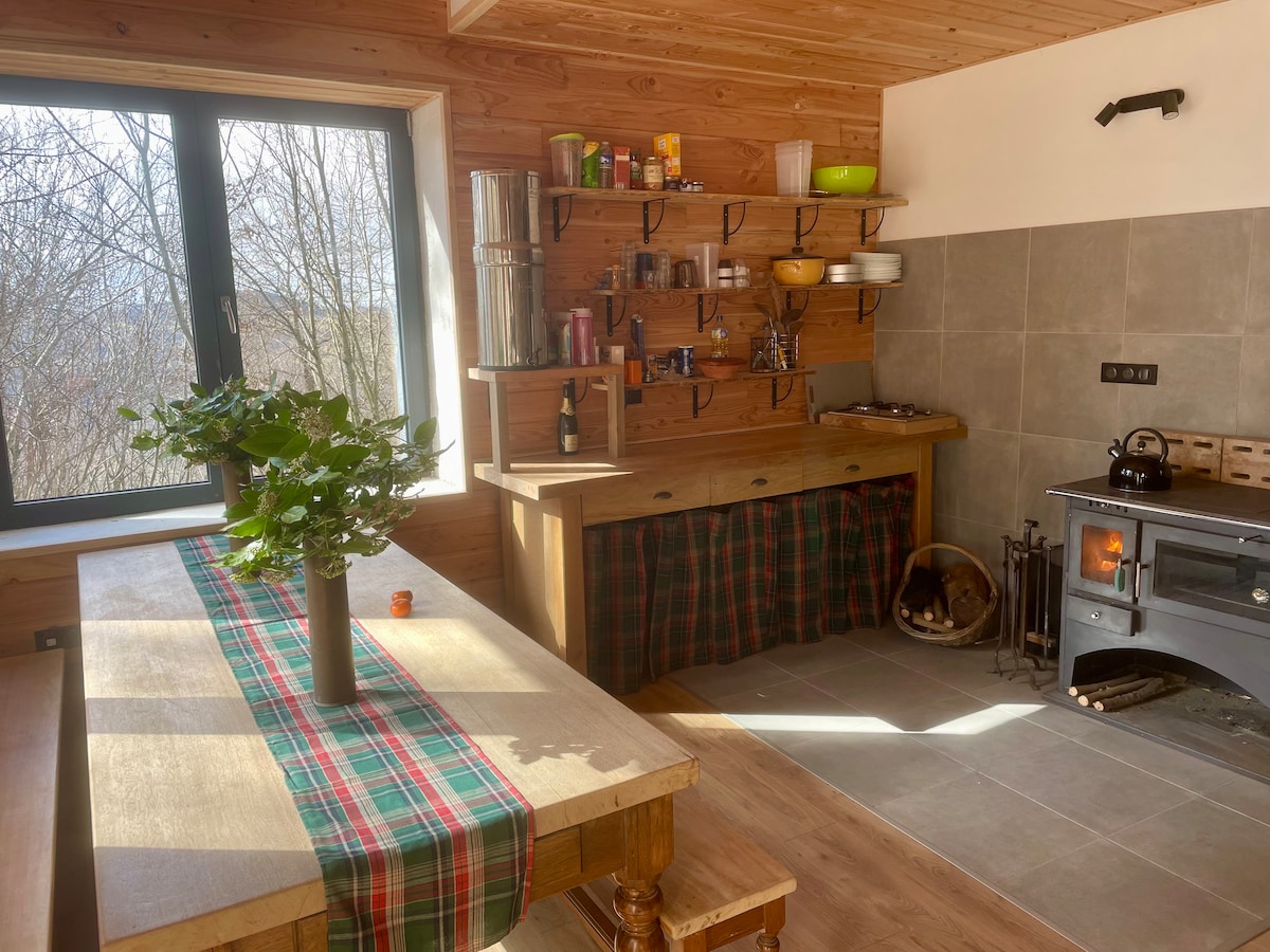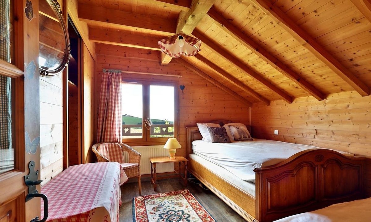 évadez-vous dans notre charmant chalet, résidence secondaire, rénové, récemment, niché au cœur de la nature. Confort moderne, ambiance, chaleureuse et paysage, enchanteur vous attend ! Réservez votre escapade dès maintenant.  le chalet se compose de 4 chambres lit queen size 160x200, et une en mezzanine deux lits d’appoint. Au premier un grand espace avec une cuisine ouverte sur le salon, et la salle à manger avec une cheminée.