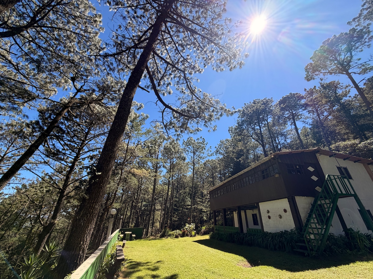 Relajate con toda la familia en este tranquilo alojamiento. Disfruta del mejor clima de la zona alta de El Salvador, rodeado totalmente de pinos y ciprés, contácto directo con la naturaleza, puedes venir con tus peluditos somos petfriendly. Tendrás una estadía inolvidable que sin duda vas a querer regresar, respiras aire puro y el único ruido que escuchas es el del viento moviendo los árboles. Para llegar hasta la cabaña debes llevar vehículo 4*4