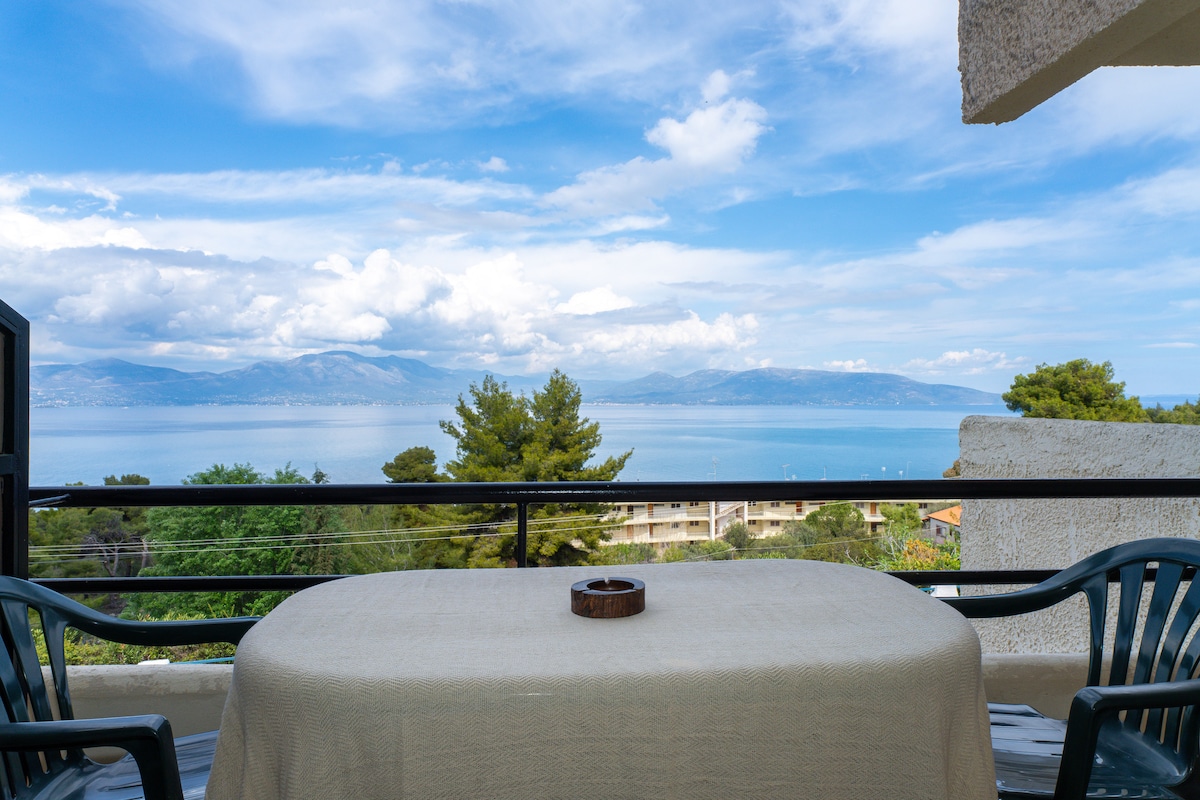 The accommodation is located in a lush, quiet environment with panoramic view of the sea and the island of Evia. 15km from the beautiful city of Chalkida with the unique phenomenon of "crazy waters" and 15km from the city of Oropos, which is connected to the island of Evia by ferry. The accommodation is located 550 meters from the sea and a small beach, which is visited only by the few residents of the area. In a very close distance there are other small, picturesque beaches.
