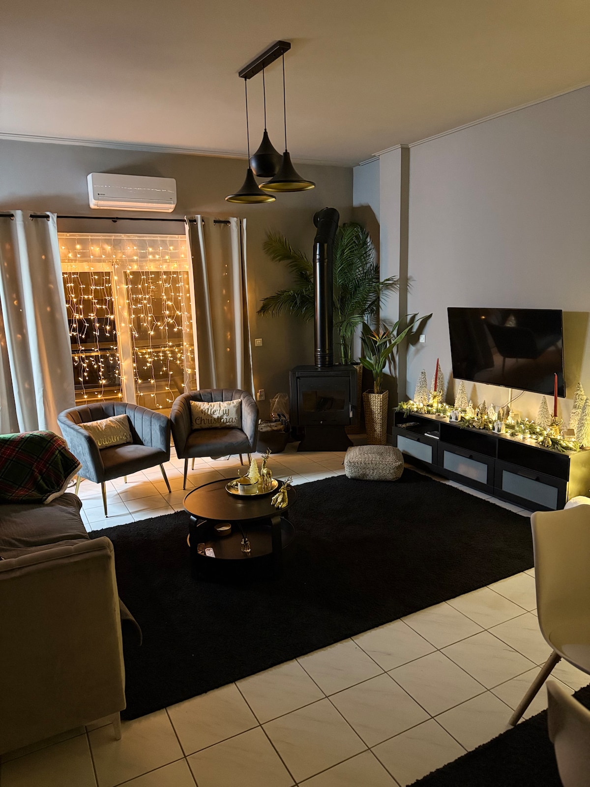 Welcome to a new, modern and spacious house, decorated in Scandinavian style, designed for comfort, ideal for all-year getaways to Chalkida. This four-story house has 3 bedrooms, 3 bathrooms, 2 kitchens and fireplace. It has a private elevator and a beautiful loft. The house is located 300 m. from the seafront at a very quiet neighborhood. The city promenade, the fortress of Chalkida, the train station, restaurants, shops and beaches are all within walking distance from our front door.
