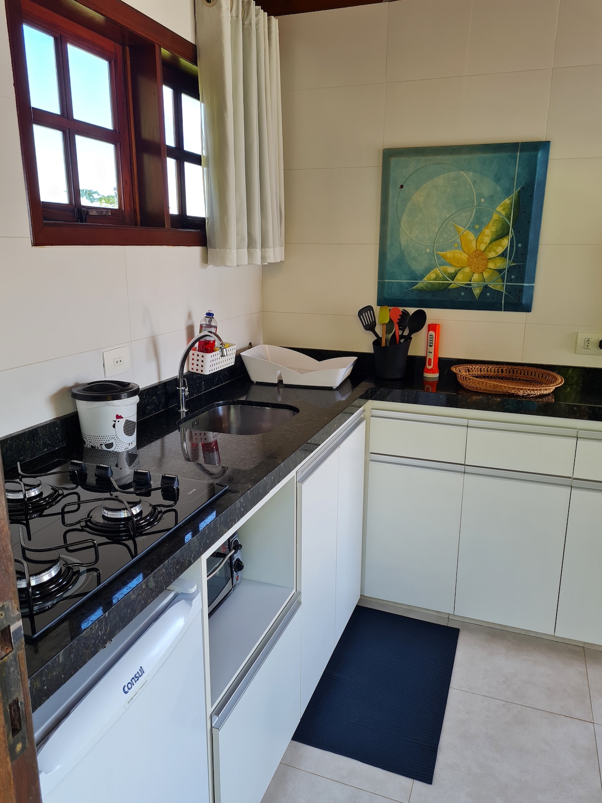 Todos os nossos chalés são privativos, com banheiro, cozinha completa, TV Smart e Wi-fi 300mb, o que permite você trabalhar caso precisar. Também temos ventilador de teto nos quartos e varanda privativa com vista para as montanhas. No geral o chalé é simples mas aconchegante, ideal para quem procura um lugar sossegado próximo a praia e rodeado por natureza, sem muito luxo e com um ótimo custo benefício.