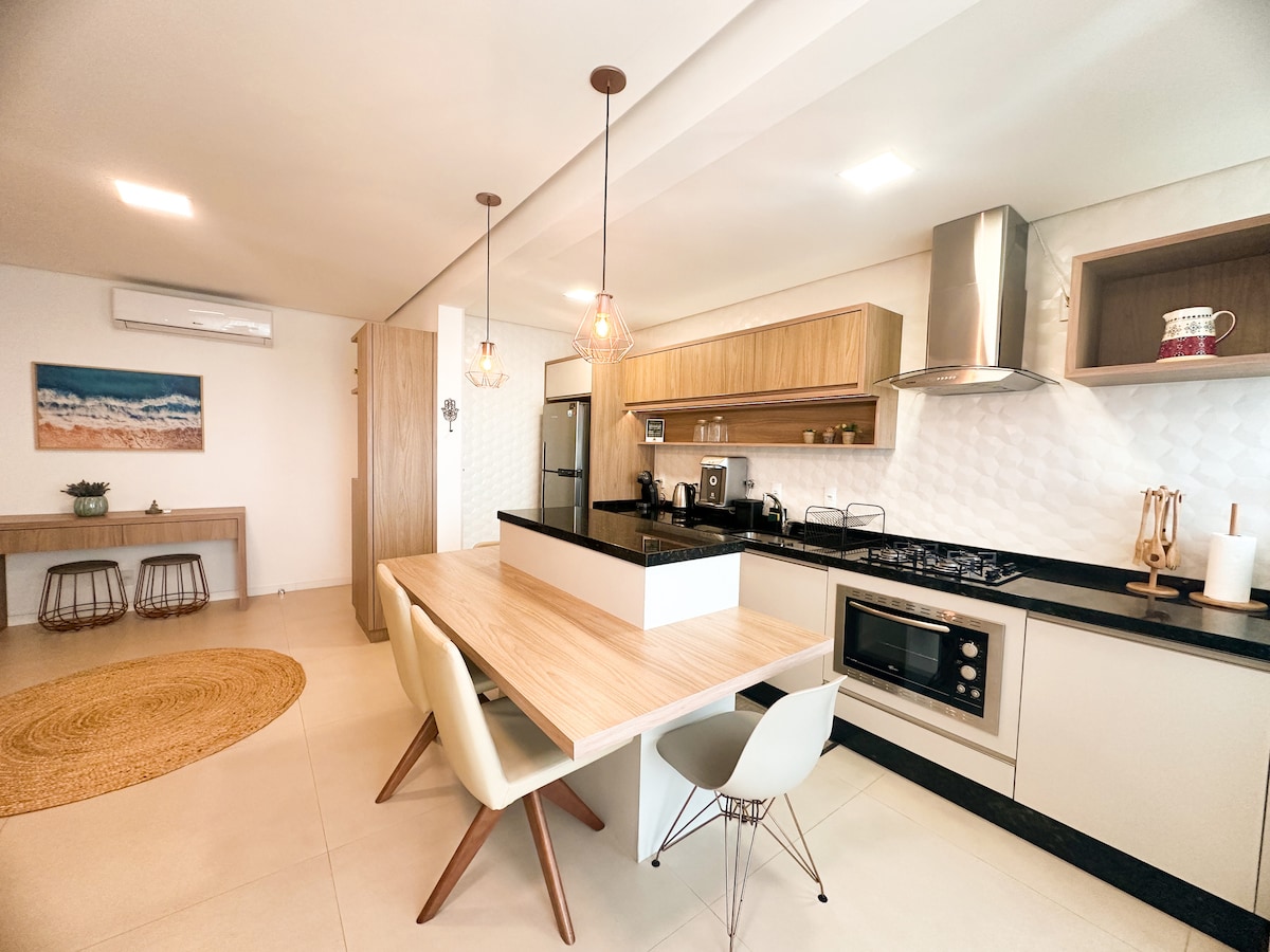 Studio novo e decorado, a apenas 50m da praia calma de Jurerê Tradicional e pertinho da charmosa Canajurê. Ideal para quem busca tranquilidade e, ao mesmo tempo, quer estar próximo ao agito de Jurerê Internacional. Condomínio familiar, seguro e rodeado por natureza — onde você acorda ouvindo os pássaros e termina o dia curtindo o pôr do sol na areia. Espaço compacto, aconchegante, com vaga de estacionamento exclusiva.