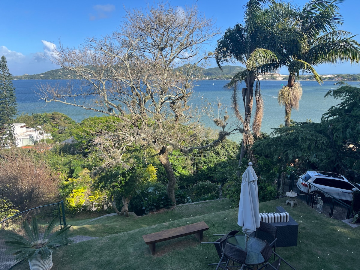 Banho quente, ar condicionado frio, cama boa e uma linda vista para a lagoa! Apartamento térreo. Dois quartos com linda vista para a Lagoa da Conceição (uma cama de casal em cada quarto), cozinha (pia, cafeteira, microondas, frigobar, forno elétrico e fogão por indução uma boca), lavanderia, estacionamento e jardim amplo e privados. Banheiro privativo. Ar condicionado nos quartos, smartTV 50"no quarto de casal. Pet Friendly, o animal de estimação é bem-vindo e paga diária à parte.