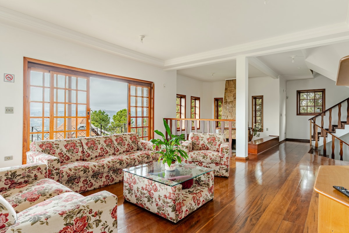 A casa foi totalmente reformada, agora com duas suítes e um quarto com banheiro privativo. Ganhou pisos novos, forro de gesso, iluminação moderna, novos móveis e decoração renovada. Tudo isso realça ainda mais a vista exuberante que o imóvel oferece! A Casa do Curupira está localizada em um condominio particular, a propriedade oferece conforto, privacidade, silêncio e ar puro. A casa acomoda confortavelmente até 6 pessoas com Wifi e internet ótima! No sitio temos o Chalé Mirante da Coruja