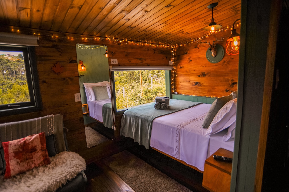 Viva o charme de Campos do Jordão/SP em nossa cabana acolhedora, abraçada pela natureza e deslumbrantes vistas montanhosas. Ideal para relaxamento, esta cabana possui banheira, ar-condicionado, smart TV, Wi-Fi e Lareira digital. A apenas 10min (6,0km) do agitado Centro de Capivari, promete um refúgio sereno para renovar as energias. Reserve agora e venha criar memórias inesquecíveis! 🏕️