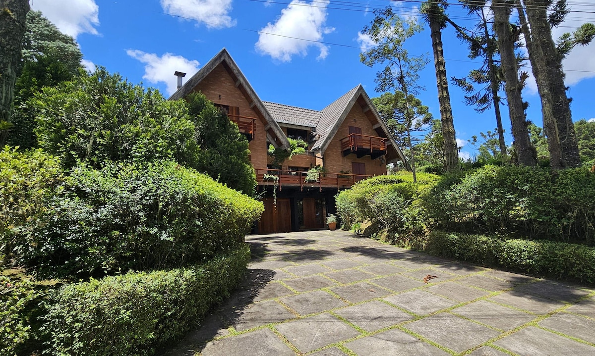 Lugar aconchegante . Localizada na porção superior de uma montanha com uma vista inspiradora. Anexo da minha casa, totalmente independente, inclusive a Hidro e piscina. Possui 2 suítes, cozinha gourmet americana, sala com TV SKY , WI-FI com Starlink (Alta velocidade) e aquecedores elétricos nos quartos. Do lado de fora, há uma piscina de borda infinita, hidromassagem, lareira de chão e total privacidade. À 900 metros do centro da cidade e totalmente asfaltada. Amamos animais !!! Nos consulte