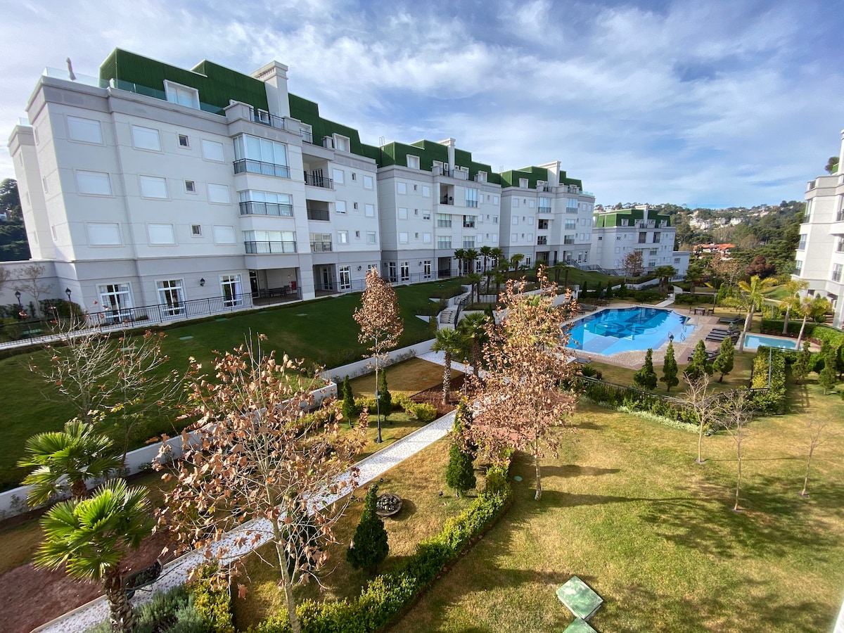 Flat Completo - Piscina aquecida e vista p/ Serra