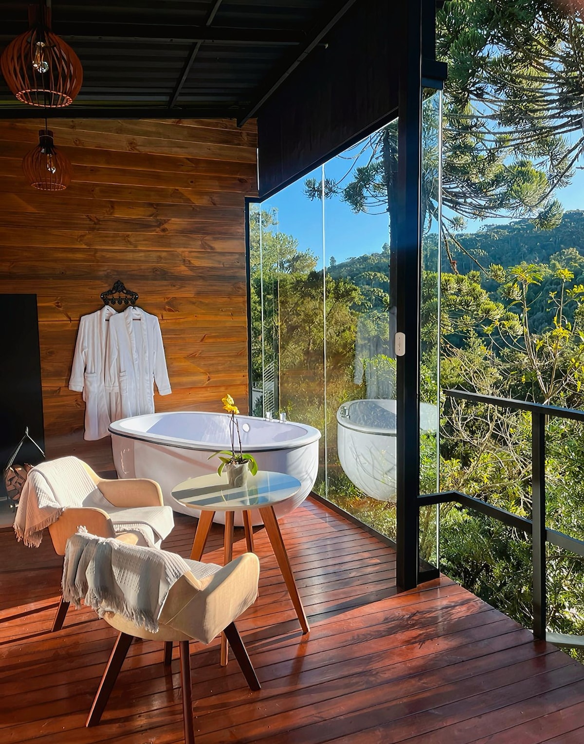 A Cabana Beija Flor é um refúgio intimista em Campos do Jordão, perfeita para casais que desejam privacidade, silêncio e contato com a natureza. A Cabana oferece uma atmosfera acolhedora e romântica, com banheira de hidromassagem ideal para relaxar e aproveitar o clima da serra. O espaço conta com automação pela Alexa, permitindo ajustar luzes e música para criar o clima ideal. Um refúgio exclusivo para desacelerar e apreciar o tempo a dois.