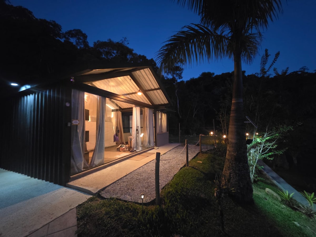 local muito tranquilo! ideal para renovar as energias! fugir da correia do dia a dia,com muita paz e tranquilidade! ar totalmente puro céu ao cai da noite totalmente encantador. a 700 metros do Encontro dos rios Lumiar, com vista para as montanhas.dar pra ouvir o som do rio.ainda tem vista pra estrada toca da onça! chalé totalmente equipado com wi-fi ar condicionado todos os utensílios de cozinha chuveiro a gás microondas liquidificador sanduicheira TV smart com Netflix Sky.