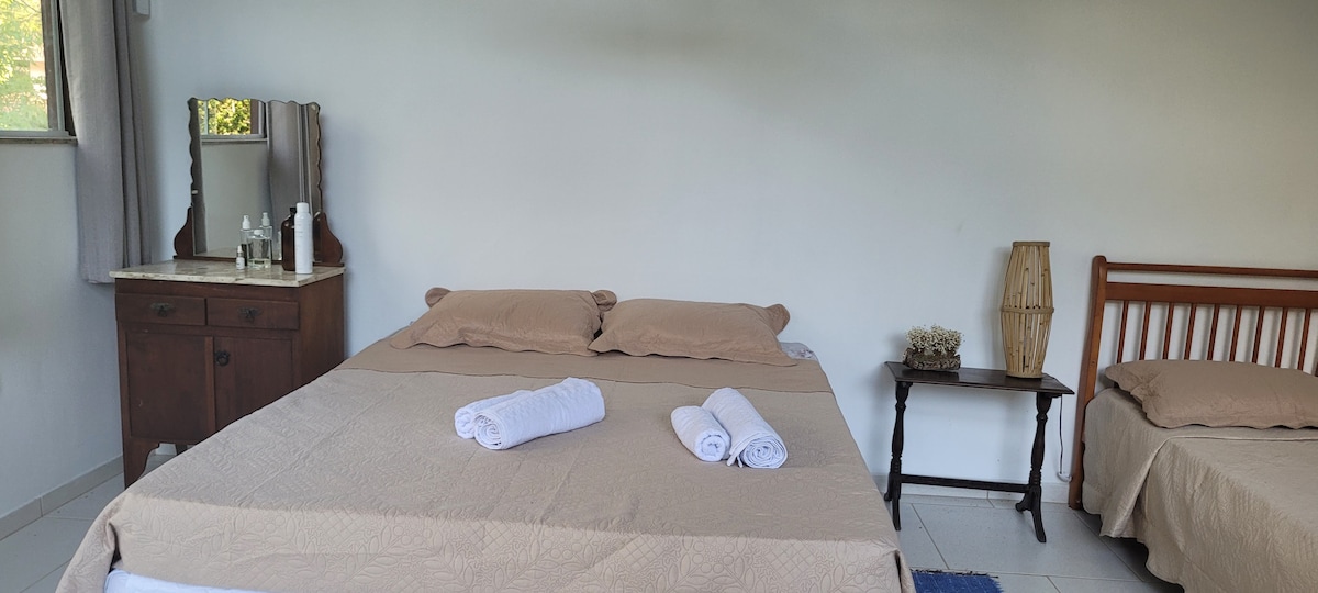 Na reserva, confirme o numero de hospedes. Suite independente, com ar e ventilador de teto, deck com chuveiro, frigobar, taças, cozinha externa coberta compartilhada com outra suite, numa área de 4000m2. Opção de tranquilidade, a 3,5 km do centro do Sana. Não há comercio perto. Espaços agradáveis, rio São Bento na propriedade.(IMPORTANTE: APA do Sana. Rio para banho e usufruir da natureza. Não levar som ou qualquer objeto, bebidas ou alimentos. Ajude-nos a preservar. Bem vindos!
