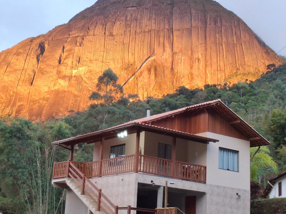 local muito tranquilo! ideal para renovar as energias! fugir da correia do dia a dia,com muita paz e tranquilidade! ar totalmente puro céu ao cai da noite totalmente encantador. a 700 metros do Encontro dos rios Lumiar, com vista para as montanhas.dar pra ouvir o som do rio.ainda tem vista pra estrada toca da onça! chalé totalmente equipado com wi-fi ar condicionado todos os utensílios de cozinha chuveiro a gás microondas liquidificador sanduicheira TV smart com Netflix Sky.