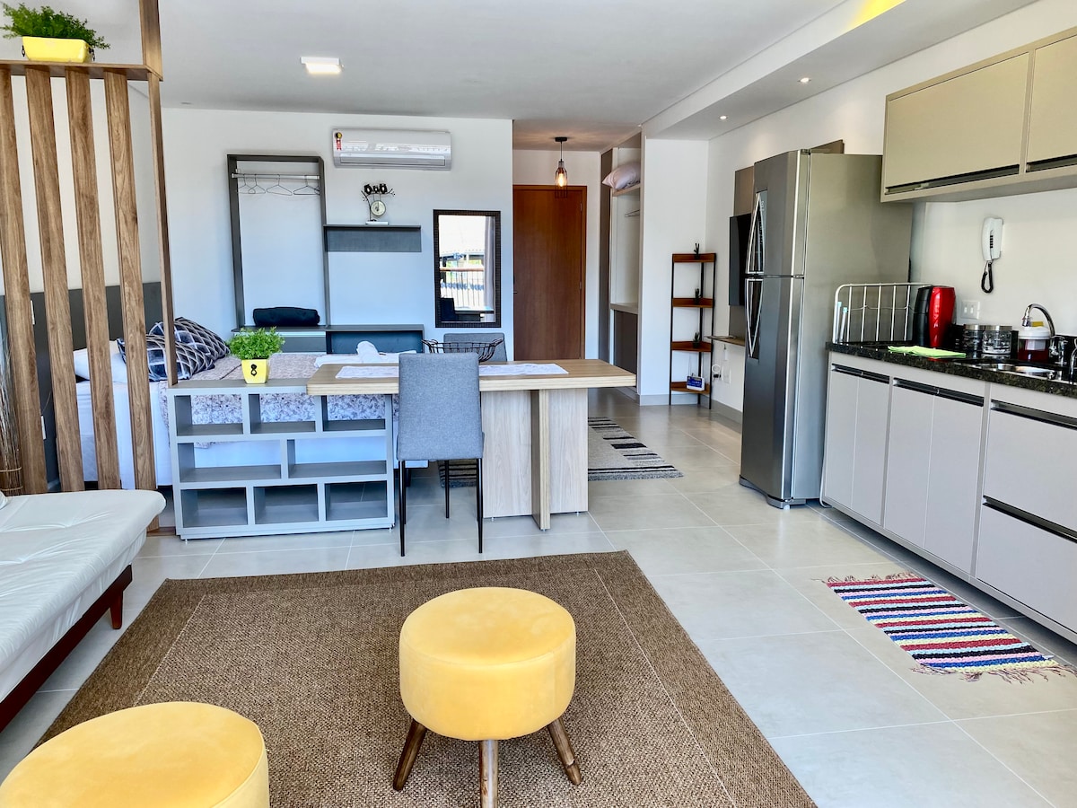 Apartamento novo/reformado, com vista incrível para o mar na melhor localização de Ubatuba. Perto de tudo e ao mesmo tempo em meio a natureza. 1 quarto com cama de casal e vista para o mar Sala integrada com a cozinha Piscina no condomínio. Ar condicionado Wi-fi rápido de 200mb Vaga de garagem Portaria 24h Fica na Prainha do Matarazzo e a 5 minutos da Praia do Perequê-Açu. Moderno e com uma vista paradisíaca. Por estarmos próximos ao Café de La Musique, pode ter barulho nos finais de semana.