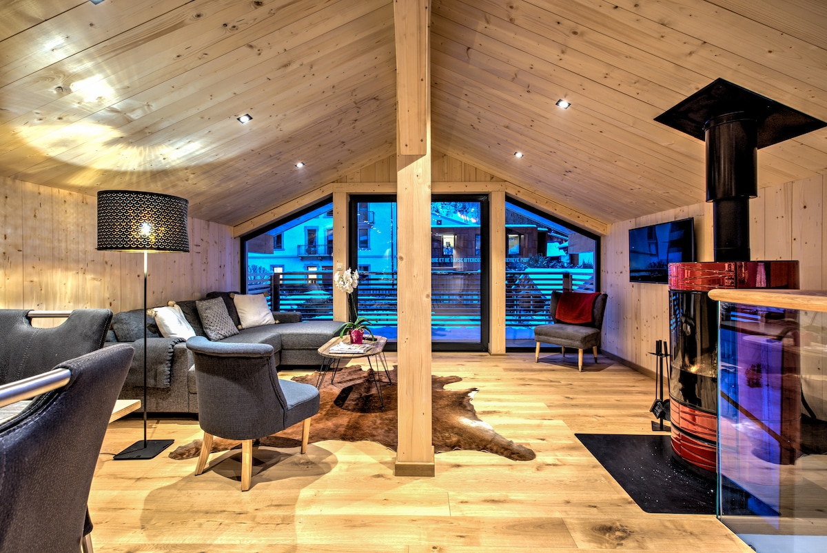 Chalet du Glacier is situated in the centre of Chamonix with all the restaurants and shops at your doorstep. The main ski shuttle-bus station, accessing all the ski domains, is only 200 metres away. There is a large open-plan living area with a fully equiped kitchen, log burner and stunning views of the Mont Blanc from the panoramic windows. For your comfort, the 3 bedrooms each have their own private shower rooms. There is free parking on the property.