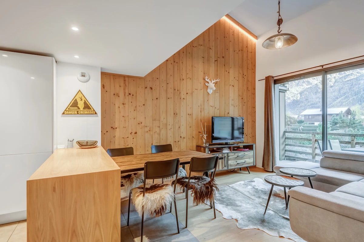 Incredible cocoon in the heart of Chamonix! L'Abri Vallot will seduce you with its location and decoration in a contemporary mountain style! Enjoy a private terrace with a sofa and a view of the glaciers and Mont-Blanc summit! A separate bedroom with a very comfortable double bed (separable into two single beds), a kitchen equipped with all the appliances! The walk-in shower to start a great day!