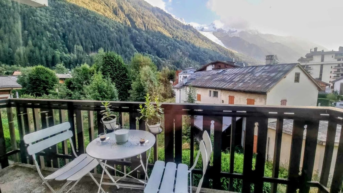 Magnifique studio avec terrasse, refait à neuf, pour 2 personnes, superbe vue montagne, hyper centre, Carré d'Or de Chamonix. Studio 24 m2, couchage pour deux personnes. Canapé convertible haut de gamme neuf 2023. Matelas 17 CM pour couchage quotidien. Couette, télévision, aspirateur, machine à laver le linge, micro onde, cafetière, bouilloire, grille pain, appareil à raclette . Salle de bains neuve octobre 2024 Wifi privé, bonne connexion individuelle sécurisée, 4 G, Télétravail possible.