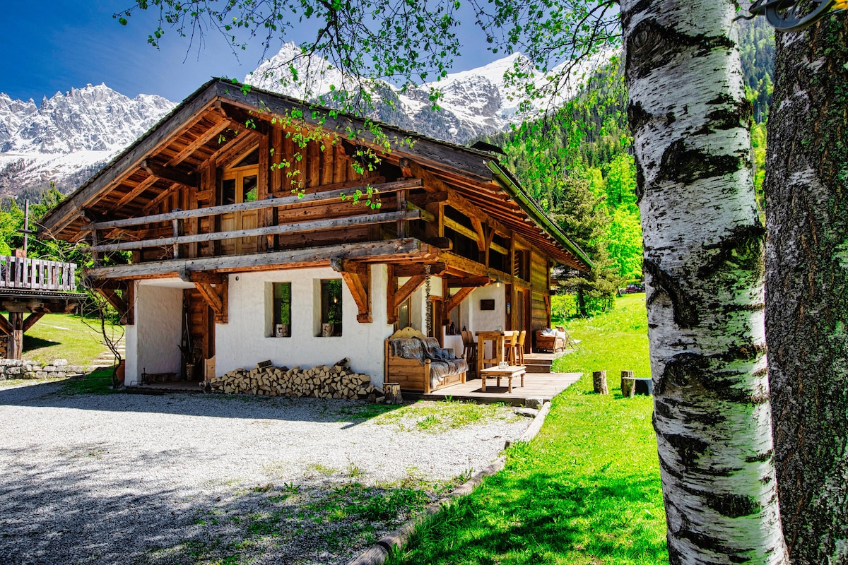迷人的老式木石度假木屋,可欣赏勃朗峰的美景