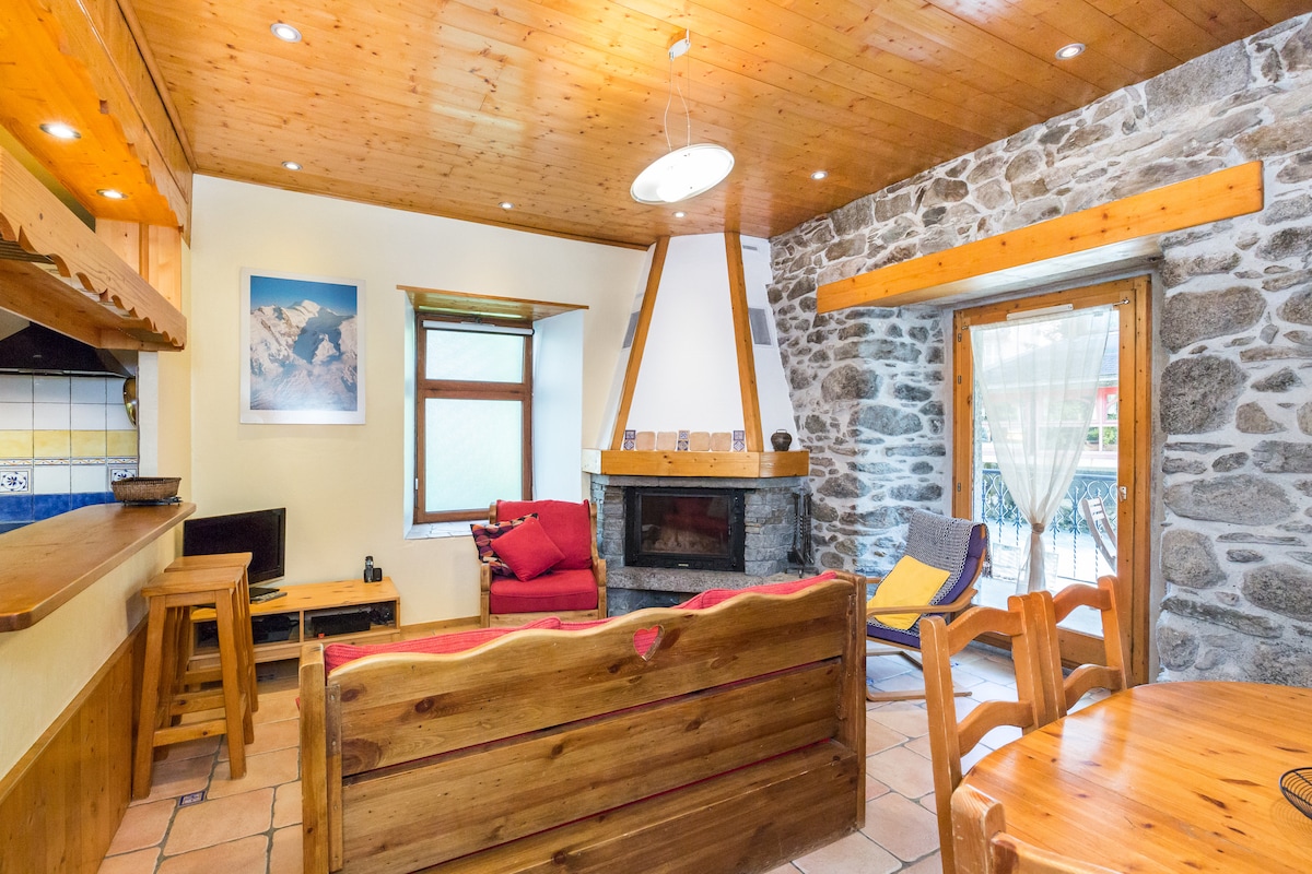 Enjoy a stay in our beautiful rustic style apartment inside a lovely old stone building in the historic town centre pedestrian zone of Chamonix Mont Blanc. Welcoming fireplace. Close to the skiing (walk to Brèvent-Flégère), hiking and all the shops and restaurants. Our private balcony on the river has beautiful views of Mont Blanc and is well protected from street noise. Go car free - 3 min walk to to the free buses. 5 min to SNCF train station. 8 minutes walk to inter-regional bus station.