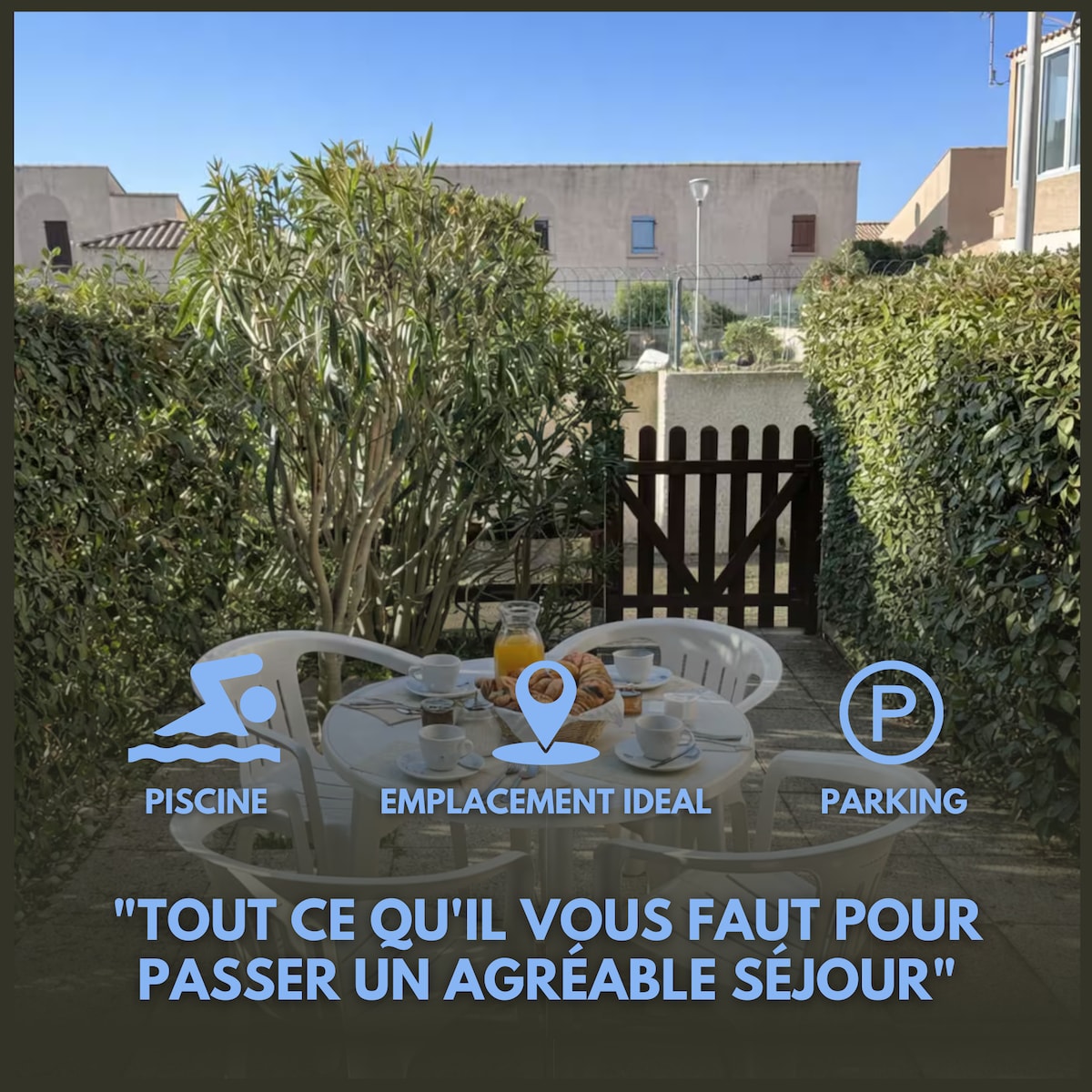 T1 bis de 26 m2 avec une chambre de 6 m2, une terrasse de 7,5 m2, canapé lit 140 dans le salon. Situé à 30m de la plage du Grazel, 300m des commerces de proximité ( boulangerie, épicerie, coiffeur, maison médicale) et à 1 km du port, d’Intermarché et de Lidl. Cet appartement cosy est idéal pour une famille avec deux enfants. La résidence est calme et agréable, avec une piscine et une place de parking privée. Piscine ouverte du 15/06 au 15/09.
