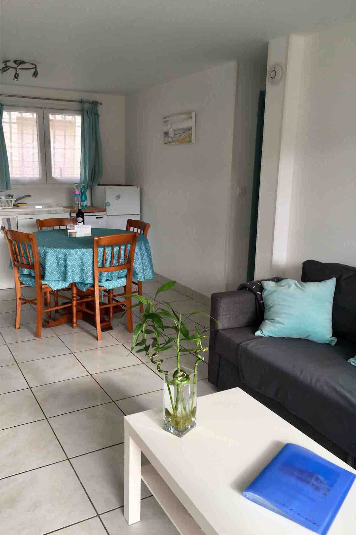 J'ai préparé ce logement spécialement pour vous avec ma plus grande attention pour vous offrir un séjour tout confort à la plage des Chalets de Gruissan. Vous y trouverez WIFI, lave-vaisselle, lave-linge, climatisation réversible, barbecue.... Très confortablement équipé pour 5 pers. possible avec le clic-clac dans le séjour. Proche commerces (de saison d’avril à octobre) et aussi à moins de 500 mètres de la plage! Stationnement devant l'appartement.