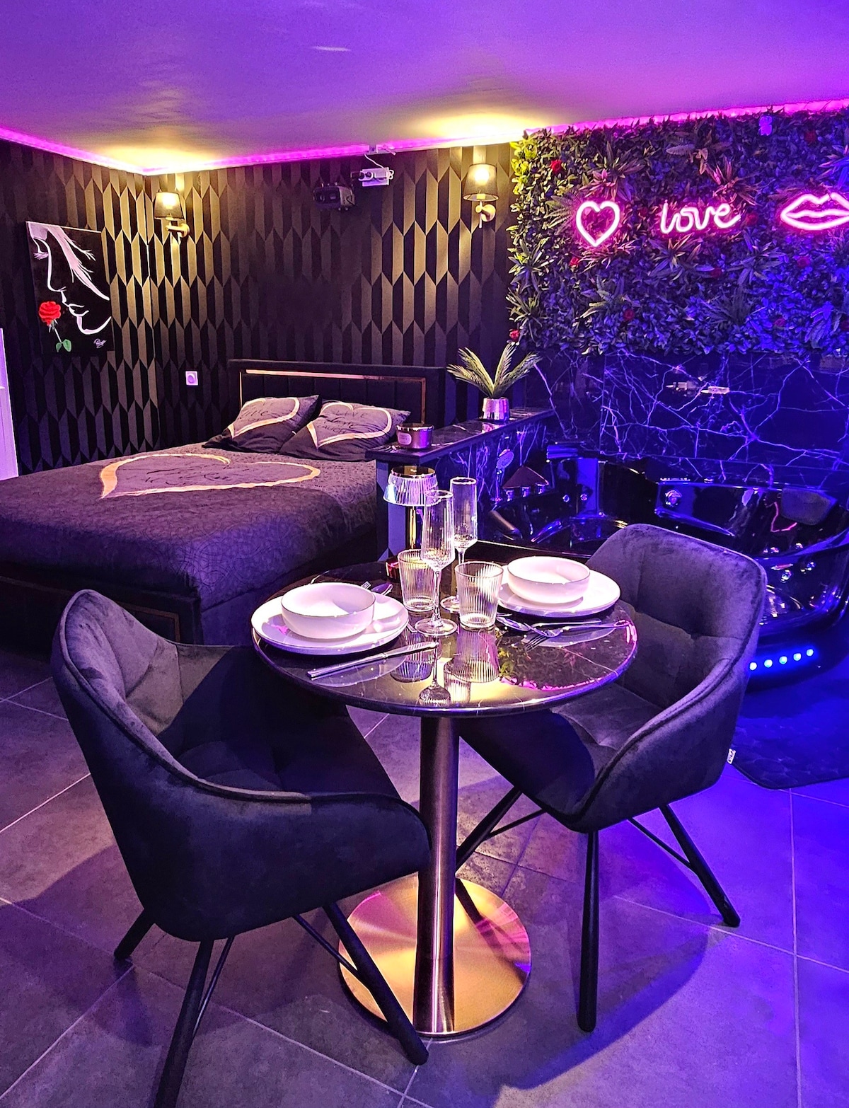 This 35 m² one-bedroom apartment is more than just a place to stay: As soon as you step inside, you'll be enveloped in an atmosphere of luxury and elegance in complete privacy. Inside, a generous whirlpool bath awaits you (200x120cm), soft lighting, and a walk-in shower complete the setup. The bedroom, with a king-size bed, is perfect for intimate moments together. The fully equipped kitchen allows you to prepare a meal or simply enjoy a romantic breakfast.