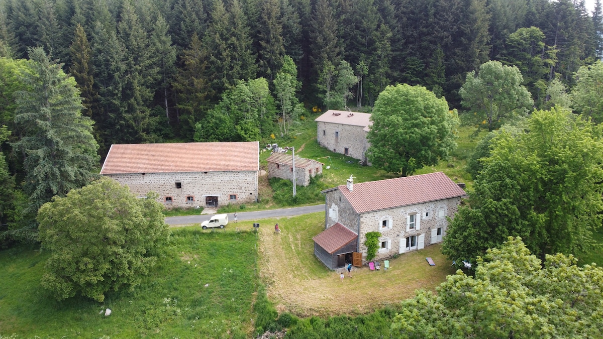 Notre gîte se trouve au coeur du Livradois-Forez dans une maison du XIXème siècle. Nous avons restauré une partie du corps de ferme afin de pouvoir vous y accueillir. La propriété est entourée de terrains et de bois et traversée par un ruisseau. Nous y vivons avec nos quatre chevaux, notre chien et notre chat.