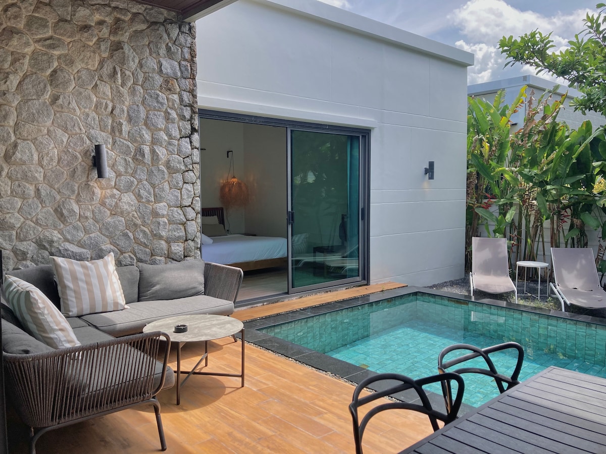 Indulge in luxury at our new brand 3-bedroom villa, featuring a stunning private saltwater swimming pool, complemented by a beach area perfect for children. Located just 5 minutes from Rawai and Nai Harn Beaches, this modern villa is nestled in a private and quiet residence close to shops, where you can find restaurants, supermarkets, and massages. Ideal for families or friends seeking relaxation, it offers a seamless blend of luxury and convenience. Your getaway starts here!