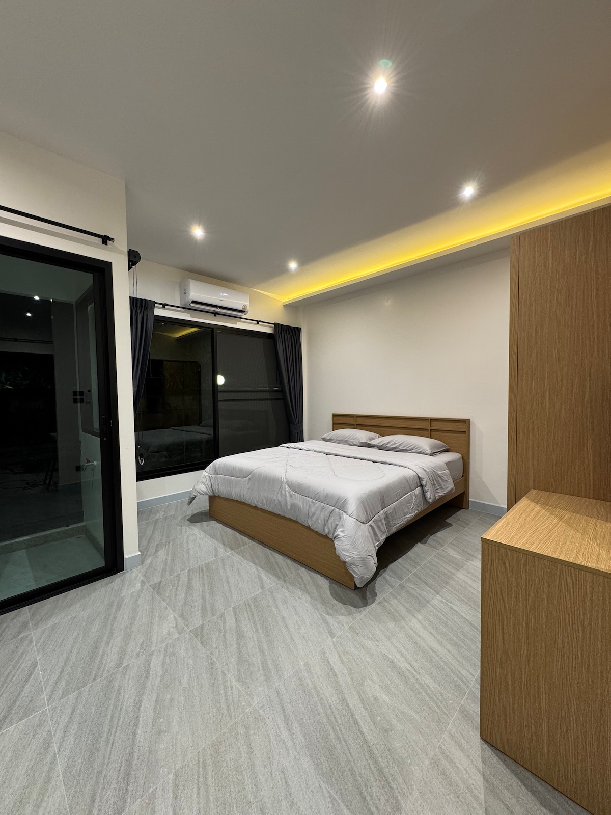 A cozy house with a pool under the shade of palm trees in the heart of Chalong ✅ Pool and sun loungers available 24/7 ✅ Unlimited Wi-Fi ✅ Smart TV ✅ Fully equipped kitchen with all appliances and utensils ✅ Hair dryer in the bathroom ✅ Free motorbike parking inside the resorts territory ✅ Electricity and water included in the price ✅ Cleaning and linen change twice a week included in the price