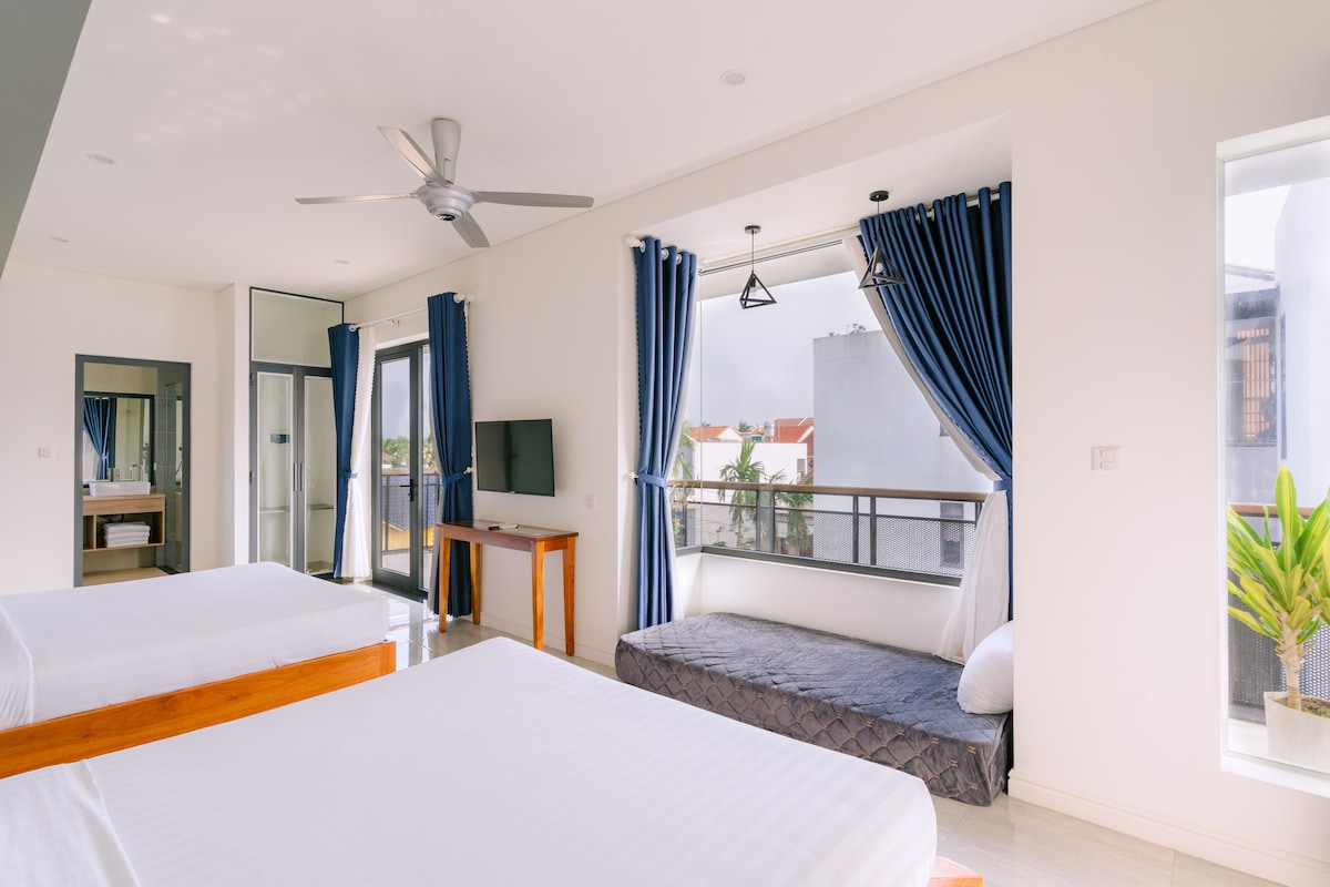 🎁 A newly built villa just 3 minutes’ walk to both Cua Dai Beach and Thu Bon River, offering a rare blend of privacy, wellness, and coastal charm. Enjoy a private pool, beach yoga, and walkable access to local restaurants and spas. With 3 serene bedrooms (2 king beds + 2 singles), it comfortably hosts 6 adults + 2 kids (under 6) — perfect for families seeking space, relaxation, and meaningful connection in a refined, tranquil setting.