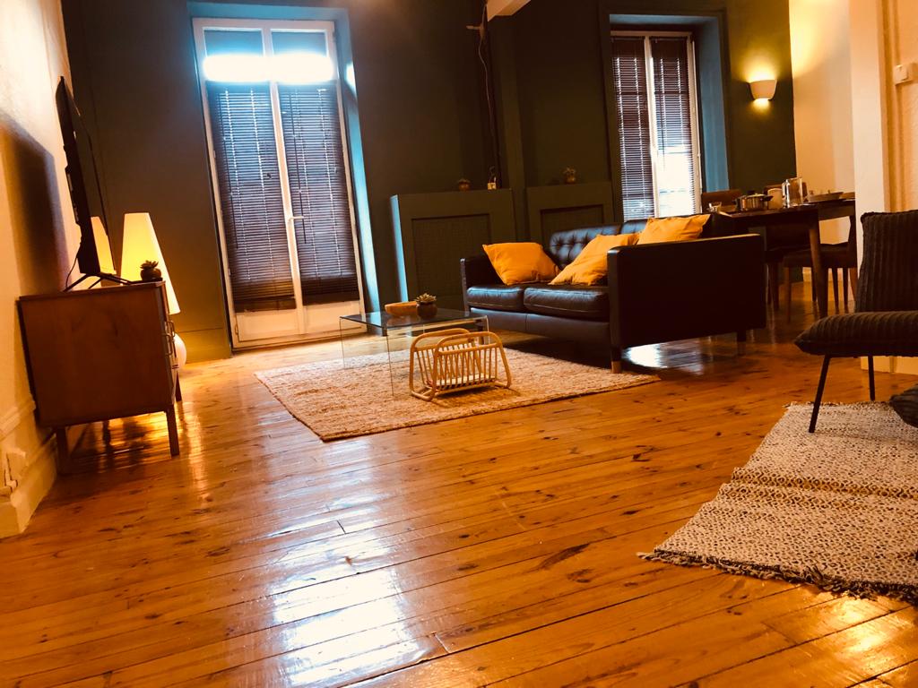 Profitez d'un logement élégant et central de 50 m2. Refait à neuf, dans un immeuble de caractère et sécurisé. Situé sur la voie du tram à 2 pas du marché Saint Pierre et de toutes les commodités, à moins de 300 m de la place de Jaude et de la cathédrale et à 1 Km du siège Michelin. Connexion wifi . Il dispose d'une pièce à vivre de 30m2 avec une cuisine équipée. La chambre est au calme côté cours, lit 160, salle de bain. Possibilité de parking privé et de repas sur demande. Café et thé Inclus.