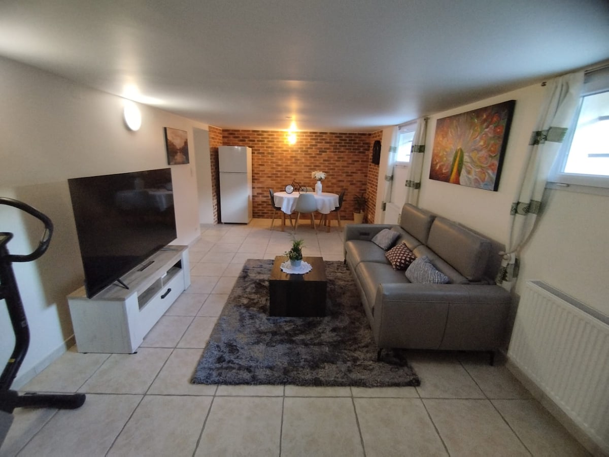 Charmant appartement de 35m2 situé au dessus de la dépendance familiale. L'appartement est accessible par un escalier indépendant. L'entrée donne sur le salon avec sur le coté un bureau pour travailler. Il est à 5 minutes de la forêt d'Halatte, de Senlis, 10 min du Parc Astérix, 15 minutes de la Mer de Sable, 25 minutes de Chantilly, 30 min de Roissy Charles de Gaulle, 35 minutes du Château de Compiègne.