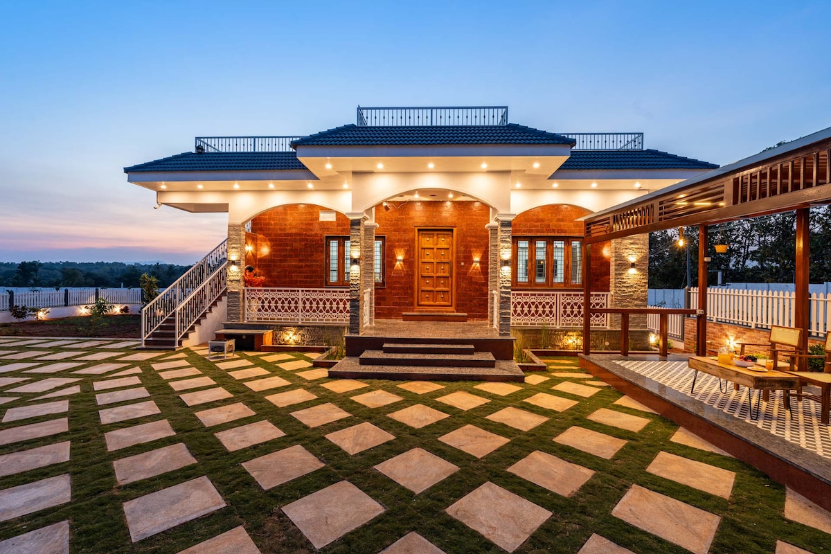 Villa Discover Sharanyam (Nest), a spacious and luxurious eco-retreat designed for ultimate comfort. Surrounded by a thriving garden teeming with life, this sustainable sanctuary offers a peaceful escape. Its thoughtfully crafted interiors and tropical garden provide a genuine "home-away-from-home" experience. Awaken to nature's embrace and unwind in a space perfect for both relaxation and mindful rejuvenation. Secure your eco-friendly getaway today. 3 Bedrooms and 3 bathrooms with 3 extra bed.
