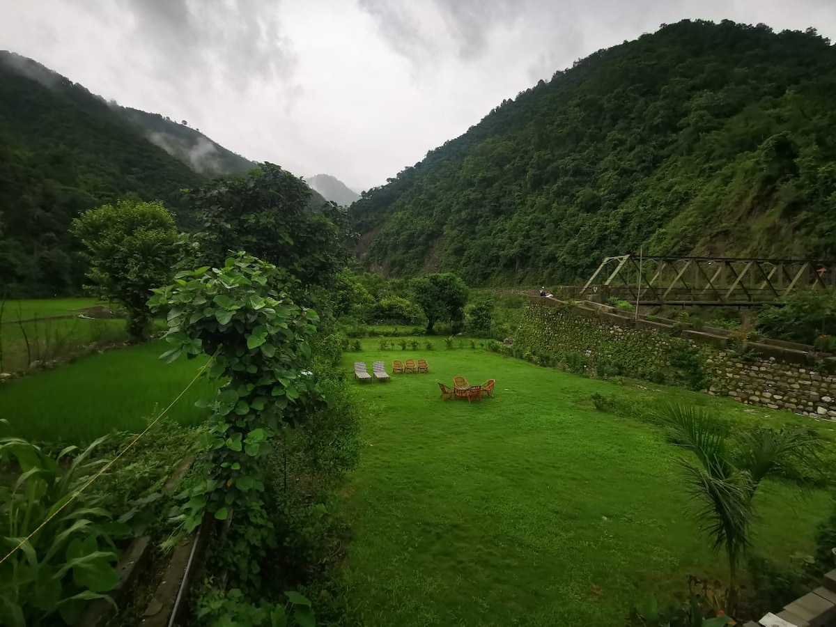 Escape to Shambhala, a hilltop getaway in the beautiful hills of Uttarakhand. 40 minutes away from Rishikesh and surrounded by stunning mountain views, this peaceful retreat is the perfect place for a restful getaway. Family Cottage is a spacious two-storey cottage with a kitchen and balcony suitable for couples, families and groups of friends. Perfect for a peaceful getaway with family or friends. Experience the beauty of Rishikesh and rejuvenate your mind, body, and soul at Shambhala.