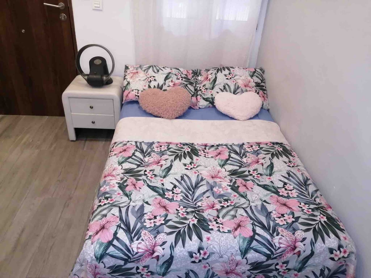 Is a penthouse, has a tinny bathroom, separate small kitchen, quite big bedroom with 1,35 x 1 90 size bed, small living room with sofa & terrace. Is spotless, tidy, freshly painted with good maintenance. It has been renovated in August 2023. Very cosy, bright, good energy, quiet and very simply place.