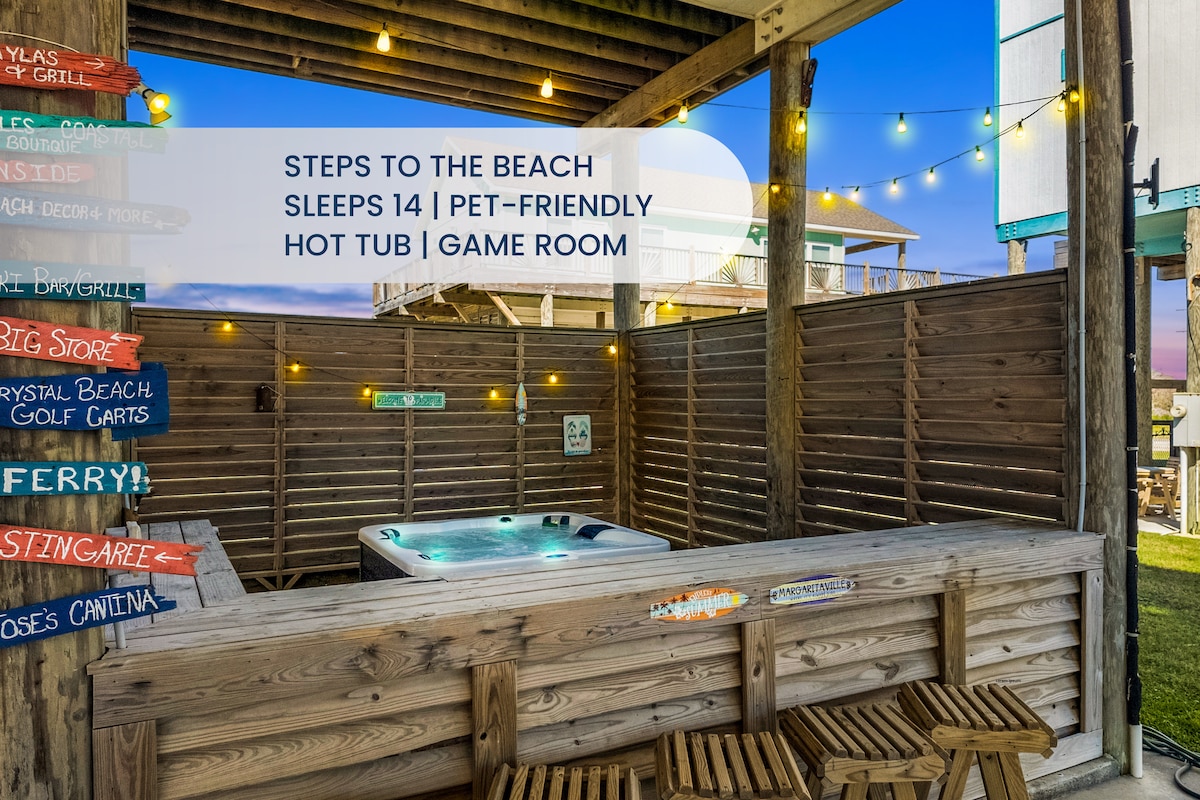 海滨4卧室| Tiki酒吧、院子游戏、智能电视
