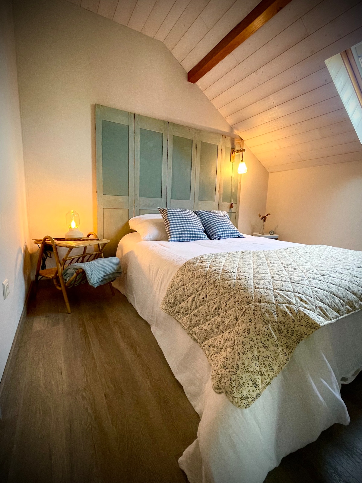 Venez découvrir cette maison à la campagne avec salle de jeux, "Le Ti'chey-toi", de 1 à 5 voyageurs, 1 chambre avec 1 lit double et 1 autre avec 1 lit double et 1 lit simple, 1 cuisine entièrement équipée,( Four, plaque induction, réfrigérateur/ congélateur, Lave vaisselle, machine a café Dolce Gusto, grille pain, presse agrumes) 1 salle de bain avec douche et baignoire, 1 espace extérieur avec Spa 2 places couvert et accès à la piscine familiale pendant la période d'été