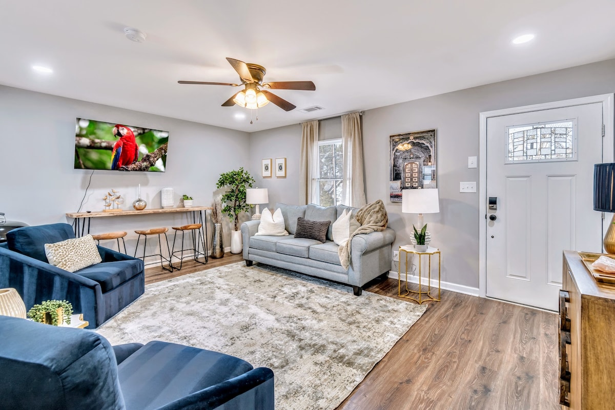 Bring your pets and enjoy a stay 1 mile from Canton Street and all that downtown Roswell has to offer. It’s also convenient to the Perimeter area, Buckhead and Alpharetta. The guest suite is located on the lower level of our home and has a private entrance with a smart lock for a fully contactless check-in experience. Completely remodeled, the guest space offers modern and comfortable accommodations. Be sure to take advantage of the swinging bed under the string lights on your private patio.