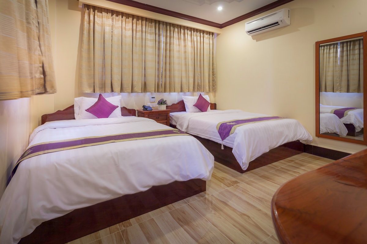 Our small and cozy hotel is located in the heart of Phnom Penh city which surrounded by many restaurants, coffee shops, supermarkets and pubs. You can reach many tourist attractions in Phnom Penh such as the Royal Palace or National Museum within a few minutes by foot or tuk-tuk. Moreover, our staffs are friendly and fluent in both Khmer and English which make us really helpful. Note: Our price is per double bed room per night which can accommodate up to 2 person.